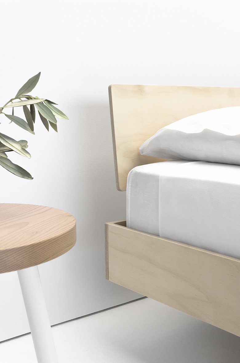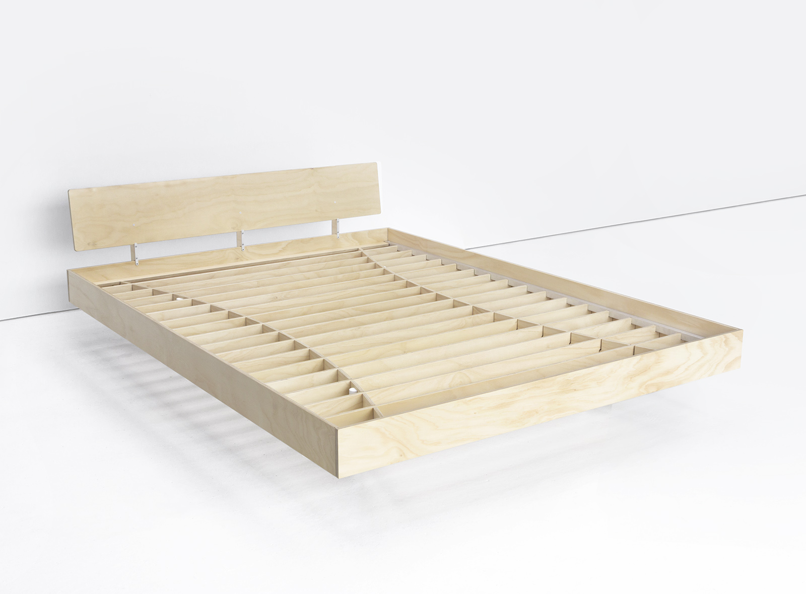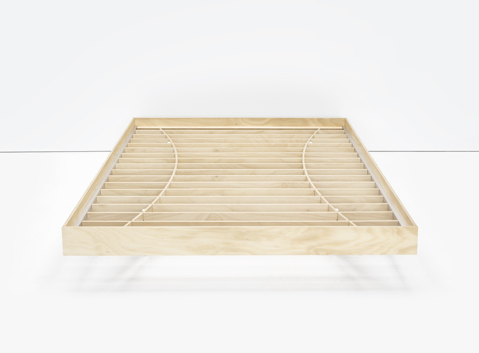 A simple bed base with a thin and minimal frame that keeps bed linen neat and tidy. The frame bed is structurally similar to the original flat pack bed and is likewise, straightforward to assemble and transport. The Frame bed 'floats' on discrete white legs. When the base is dismantled it can be carried by one person and will fit into lifts and most small cars.
